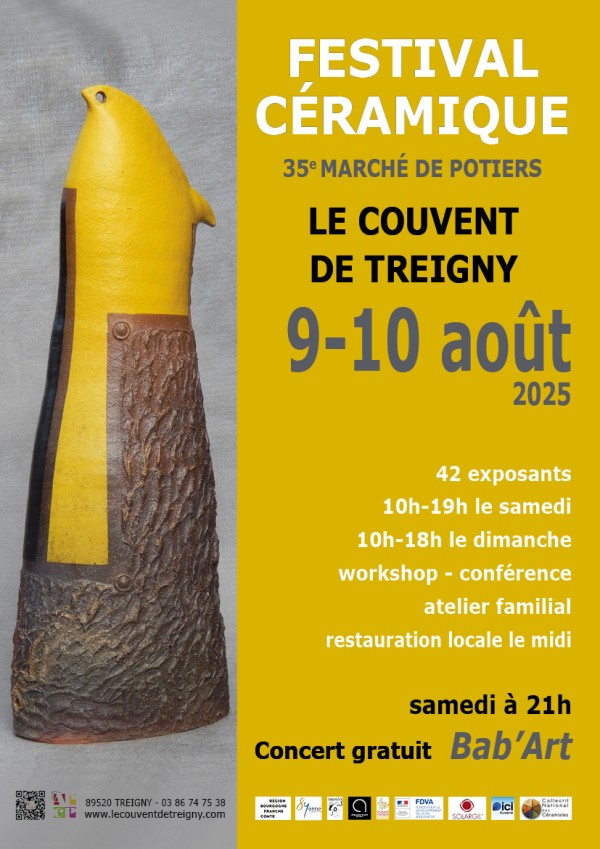 L'appel à candidatures pour participer au marché potiers du 15ème FESTIVAL DE LA CERAMIQUE du COUVENT DE TREIGNY (89), les 8 et 9 août 2026, est ouvert jusqu'au 1er février 2026, uniquement pour le…